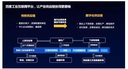 对产业链来说,百度工业互联网平台基于区块链等技术建设可信体系,核心企业驱动上下游企业,将订单数据、生产数据、质量数据、合同数据等共享至该平台。一方面在上下游企业间共享数据,联动资源,降低库存成本,实现全局最优。另一方面可以引入金融机构等第三方,基于这些共享数据对中小企业进行风险评估,降低融资成本,改善中小企业的现金流状况。