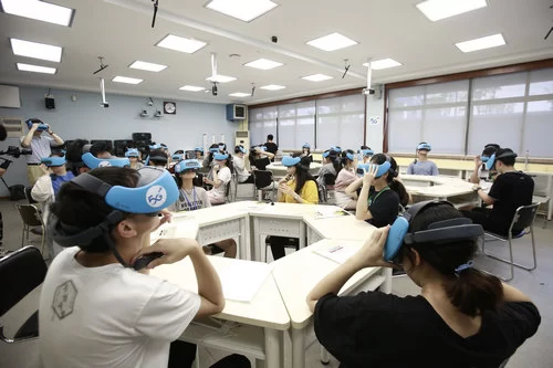 苏中已在化学楼建设5G+VR远程课堂和双师课堂,依托中国移动成都研究院CloudXR平台,部署多人互动火灾演练、化学教学等VR课程应用,应用于实际教育教学,实现了各个校区之间的优质高效互动。哪怕是请假在家的学生,也可以通过互联网5G+VR实现浸润式的课堂学习,实时参与课程学习以及与师生互动。