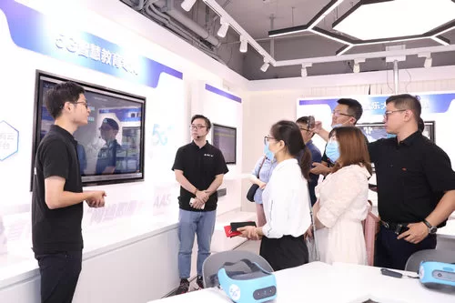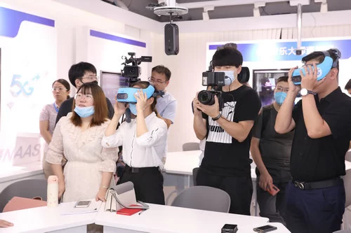 在示范区的创建过程中,也出现了一些问题和瓶颈。苏州市电化教育馆与中国移动苏州分公司围绕苏州教育信息化发展出现的海量计算、存储、链路带宽、规模化应用并发等瓶颈问题,开始共同探索5G网络技术在苏州教育中的应用探索研究,签订了《基于5G智慧教育的战略合作框架协议》和《基于5G网络的教育应用场景建设及平台开发等合作协议》,成立了“5G联合创新实验室”,可谓是为苏州智慧教育做了一个“样板间”:实验室既是5G教育场景前瞻规划和标准化应用的线下展示空间,也是各校在智慧教室、云教育等工作创新探索的联合展示发布体验窗口。实验室充分体现了互联网优势,实现了“小而精”的布局特点,验证了各个学校均可利用教室、会议室等改造提升打造智慧教室,从而加快云教育发展脚步。而中国移动开发的、由5G教育专网/城域网方案和基于CloudXR平台的VR/AR交互式教学方案所构成的“5G+智慧教育解决方案”,也成功被应用到了此次实验中,为今后苏州5G智慧教育落地应用提供了优选方案。