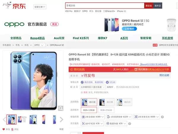 预约赢好礼 京东已开启OPPO Reno4 SE预约通道