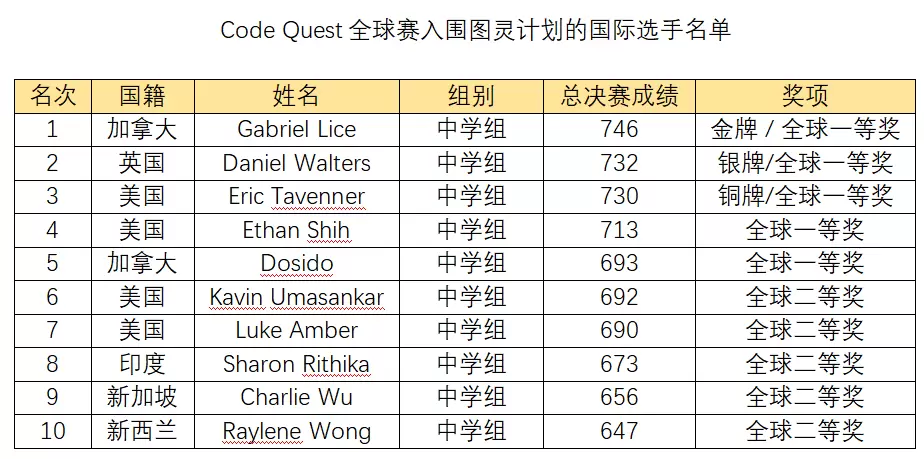 Quest全球赛上,中学组国际组全球前十名将收到图灵计划的首批邀请函,参与图灵计划定制的培养方案。
