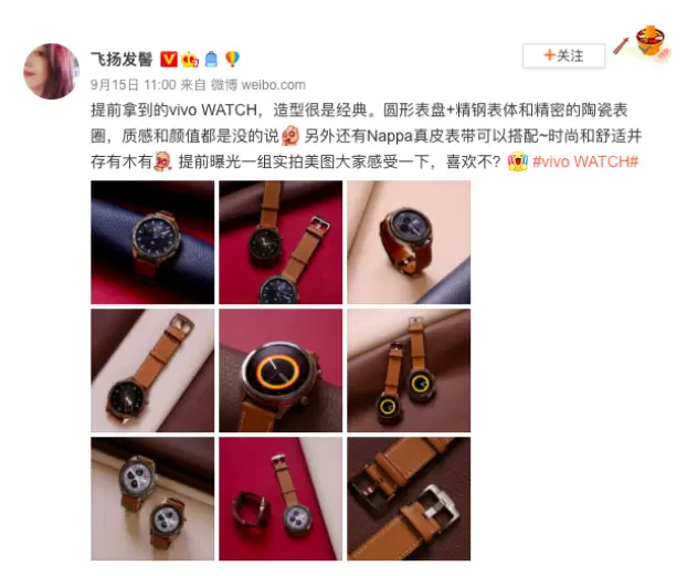 精钢表体陶瓷表圈 vivo首款智能手表将于9月22日发布