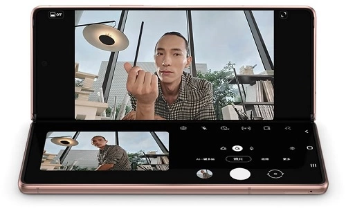 由于三星Galaxy Z Fold2 5G折叠屏手机分为内屏与外屏两个部分,所以当我们使用它进行照片拍摄时,两块屏幕都是可以实时预览我们正在拍摄的画面的。