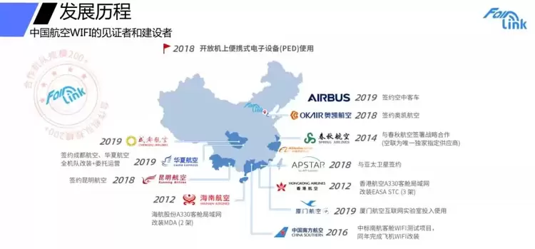 航空客舱网络服务是实现蓝图愿景的第一步,也是伴随国家新基建政策关怀下的重要基础建设第一步。世纪空联团队自2012年回国建设中国自主可控的航空网络服务以来,历经8年的艰辛,凭借着坚韧的毅力和执着的信念,一步一个脚印,获得了越来越多的同行的认可,也赢得了更多的服务合作的商机,目前已累计签约超过6家航司,签约规模近300架。