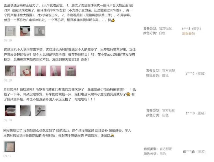 这几天,收到第一批货的买家,都迫不及待地晒出了评价,主要集中在高性价比、音质清晰、体验舒服等角度上,对小度耳机的满意度非常高。