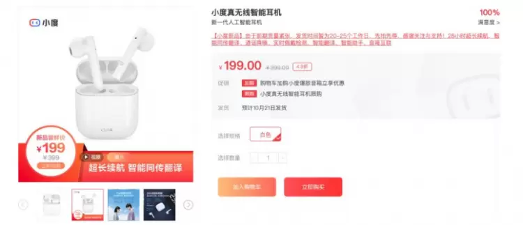 2020年下半年眼看过半,3C数码圈又杀出一匹黑马——爆款新品小度真无线智能耳机。9月15日开售2小时,就在京东、天猫、小度商城、拼多多、苏宁、国美、抖音快手小店等平台全网售罄!许多小伙伴都说:“火爆得抢不到!”为回应消费者的热情和喜爱,小度耳机决定将延长199元的新品尝鲜价,让更多消费者能够以超值价格拥有这款人工智能爆品。