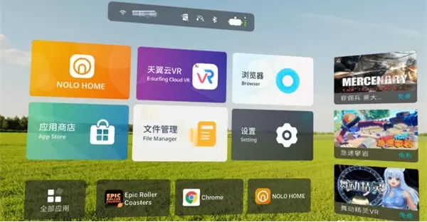 再次,NOLO X1 4K还内置了中国电信天翼云VR等合作伙伴的大量优秀内容,随时随地地体验云VR的功能。