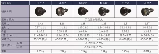 涵盖多种投影距离的6款可更换镜头