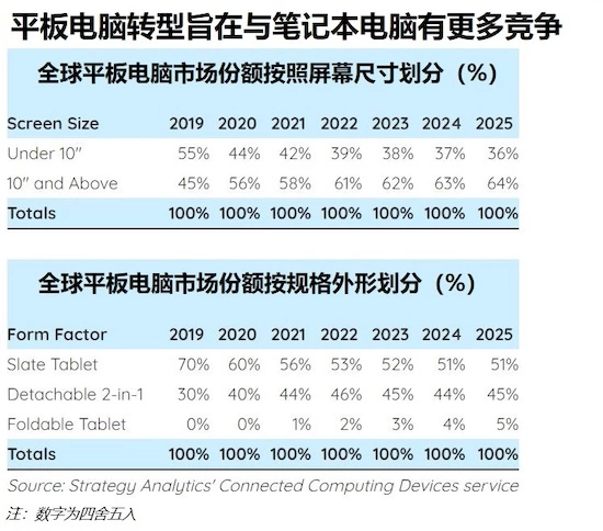 mini以外的所有Apple当前的iPad型号)的销量增加。报告指出,尽管平板电脑的销量在未来几年可能会保持平稳,但随着笔记本电脑替代品的出现,竞争将更加激烈。
