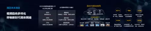 此外,未来全球网络视频流量占比将急剧上升,视频内容数据的创建和存储的位置会由端向云、边迁移。当代媒体网络面临烟囱化、碎片化、固化的3大挑战,华为能提供一张新时代媒体网络,以及面向未来的实时音视频、VR/AR/MR业务,推动新的视频技术革命,重新定义“5G+X”的新时代。