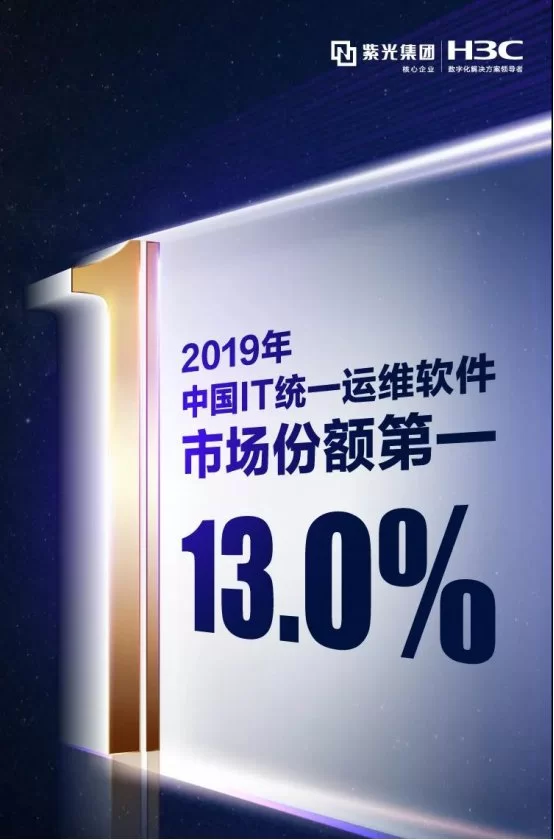 随着百行百业数字化转型的加速,数字基础设施的数量大幅提升,在此背景下,IT统一运维软件越来越成为各大组织、企业不可或缺的IT管理平台。全球权威资讯机构IDC近日发布的《中国IT统一运维软件市场跟踪报告》,IT统一运维软件市场总体规模在2019年达到5.2亿美元,纵观2019年下半年,紫光股份旗下新华三集团以13.0%的市场份额排名第一位,保持了强劲的市场竞争力。