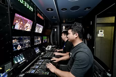 4K花园“五月花号”大型转播车内转传团队工作现场