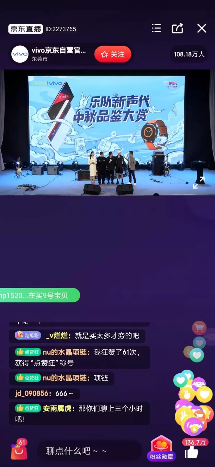 9月28日,iQOO手机携vivo WATCH智能手表为粉丝们带来一场主题为“乐队新声代 中秋评鉴大赏”的线上直播活动。期间,黑马乐队Mandarin体验了vivo WATCH的心率监测和百搭表盘等功能,其经典圆形表盘设计获得乐队成员的称赞。