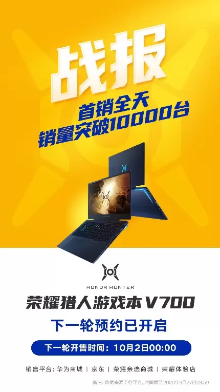 千呼万唤始出来,经过了漫长的等待,荣耀猎人游戏本V700首销日终于来临,不仅销量破万,而且仅仅开售3分钟就已经售罄,经过笔者坚持不懈的努力,总算是抢到了名额,目前现货已经到手,下面就分享一下笔者荣耀游戏本使用体验。