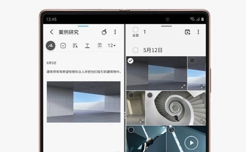 在操作上,得益于三星Galaxy Z Fold2 5G自适应分屏模式及应用程序连续性,多任务处理功能得到增强后,进一步跨越了外部屏幕与内部主屏幕之间的边界。通过这一功能,用户可以同时打开多个应用程序,并且通过拖拽,完成不同程序之间的文档发送等操作。此外,在优化手机拍照体验方面,三星 Galaxy Z Fold2 5G不仅拥有自适应分屏模式,而且支持后置摄像头自拍,配合双重预览功能,以此来充分发挥折叠屏形态的优势,令用户在拍照中也能获得十足的乐趣。