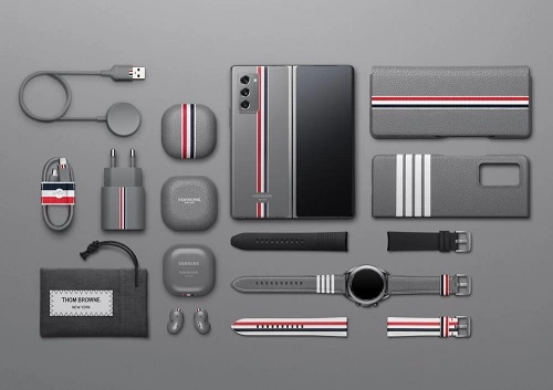 除此之外,三星与Thom Browne还联合推出了三星Galaxy Z Fold2 5G Thom Browne限量版。三星Galaxy Z Fold2 5G背壳上Thom Browne的灰色几何图形、标志性的多色条纹和罗缎纹理清晰可见,简约时尚的风格和5G高端科技的融合赋予了这款手机更大的市场。