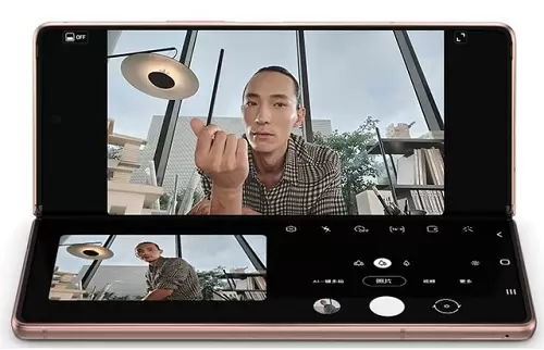 另外,三星Galaxy Z Fold2 5G也重新定义了拍摄方式。在双重预览功能下,可同时启用主屏幕与外部屏幕,从而使得拍摄双方均可看到拍摄的内容;由于该机采用了折叠屏灵动设计,所以在使用后置摄像头进行拍摄的过程中,还可以将外部屏幕作为取景器来使用,最终获得更高质量的自拍照片。