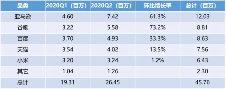 小度是百度软硬件一体化战略的重要载体,在过去几年里得到了迅速成长,占据领先的市场地位。根据市场研究机构Canalys2020年上半年智能音箱出货量数据,2020年上半年,小度智能音箱全品类出货量中国第一,也是自2019年至今累计出货量全国第一。