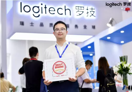 (罗技大中华区视频协作业务负责人陈明斌在展位现场接受Best of Show颁奖)