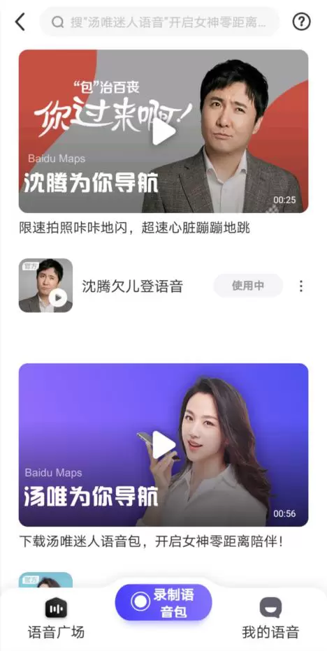 为给用户的黄金周出行带来更大乐趣,百度地图重磅上线了“军艺校草”沈腾的两款语音包。用户只需在百度地图搜索框中输入“沈腾语音包”或呼叫“小度小度,下载沈腾语音包”,即可点击下载。十一出游路上有了腾哥搞笑语录的陪伴,绝对可以和枯燥无味say goodbye。此外,用户还可以在百度地图语音广场查看其他百位明星语音包花絮视频,追星女孩又多了一个可以看“爱豆”的地方。