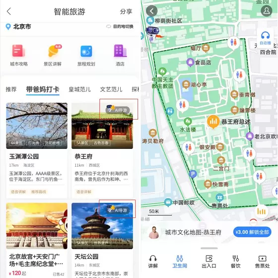 目前,百度地图智能旅游已经服务超1亿游客,将AR导览、全景虚拟游与AI导游相结合,致力于为用户打造视听一体化的方式来感知真实世界。