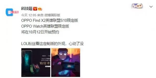10月6日消息,据微博数码博主@数码闲聊站爆料,OPPO将于本月推出OPPOFindX2英雄联盟S10限定版以及两款OPPOWatch英雄联盟限定版。