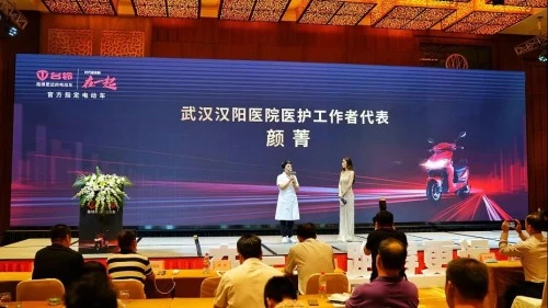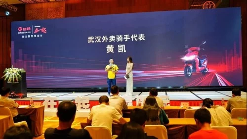 随后上台的武汉外卖小哥黄凯,一上台就表达了自己的感谢之情,“疫情期间,我送外卖骑的电动车就是台铃电动车,非常感谢。”黄凯说,封城之后他曾经花费3小时,只为替顾客送一盒泡面,“当时在武汉,能买泡面已经是幸运的了,虽然用了3个小时,但顾客跟我说的那声谢谢,我觉得是最真心的。”