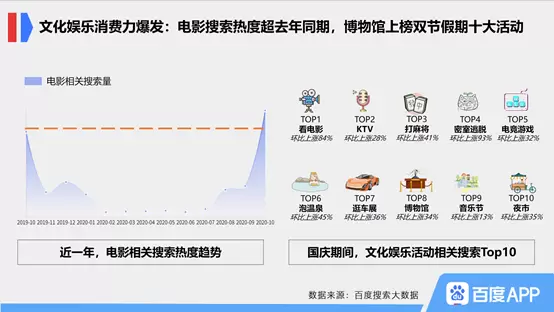 三.文化娱乐消费力爆发:电影搜索热度超去年同期,博物馆上榜双节假期十大活动