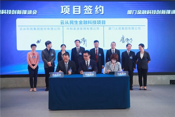 会上,“中国人工智能国家队”云从科技与厦门火炬集团有限公司(以下“火炬集团”)、中和渠道管理有限公司(以下“中和渠道”)签订战略合作协议,共推云从民生金融科技项目。