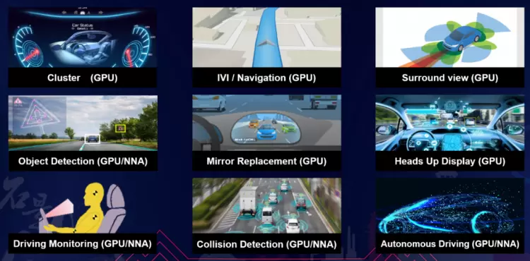 Imagination的GPU和NNA可以为汽车中各种各样的应用提供支持关于GPU和NNA的应用,时昕也在演讲中通过一些案例进行了展示。例如在汽车领域,Imagination的GPU技术可以为仪表盘、车载信息娱乐系统/导航系统、全景环视系统、流媒体后视镜、抬头显示器等应用提供高性能支持,同时利用GPU+NNA的技术组合还可以实现目标检测、驾驶员监测、碰撞监测、自动驾驶等应用。另外,NNA本身也可以为物联网边缘设备、智能视频监控、可穿戴设备、移动设备、AR/VR等应用提供强大的算力支持。