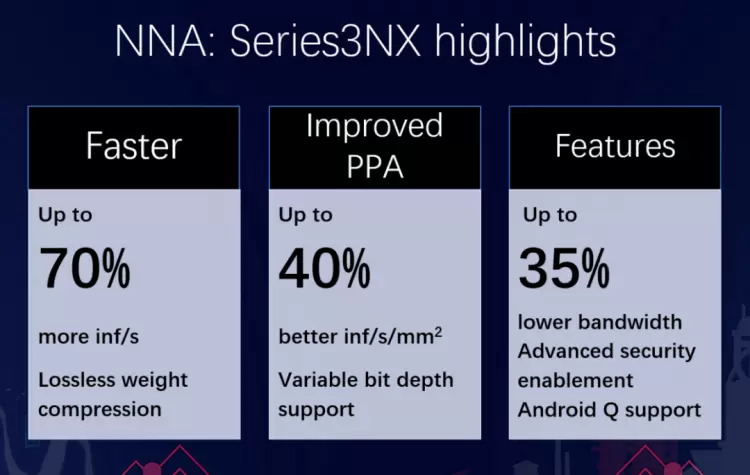 AI应用的发展离不开AI芯片的支持,根据ABI Research的预测,未来几年AI芯片的销量将持续增长,其中边缘推理芯片到2024年大约有70亿美元的市场需求,云端推理芯片也有约40亿美元的需求,这110亿美元的市场空间意味着Imagination的AI IP可以帮助SoC厂商去争取巨大的市场机会。“我们的2NX NNA曾经在AI Benchmark榜单上领先,而新一代的3NX NNA在性能、性能密度、带宽等方面又实现了大幅提升。3NX可以提供从1 TOPS到几百TOPS的算力,从强调低功耗但性能要求不严苛的场景,例如一些物联网设备,到场景复杂度和算力需求很高的应用,例如自动驾驶,3NX都能支持,客户可以根据自身需求灵活地进行选择。”时昕表示。