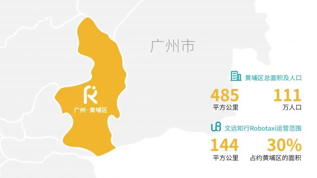 广州黄埔区人口达111万,占地面积为485平方公里,文远知行Robotaxi运营范围达144平方公里,占该区总面积的三分之一。文远知行Robotaxi服务在这里已经运营超过300天,无任何主动责任事故。