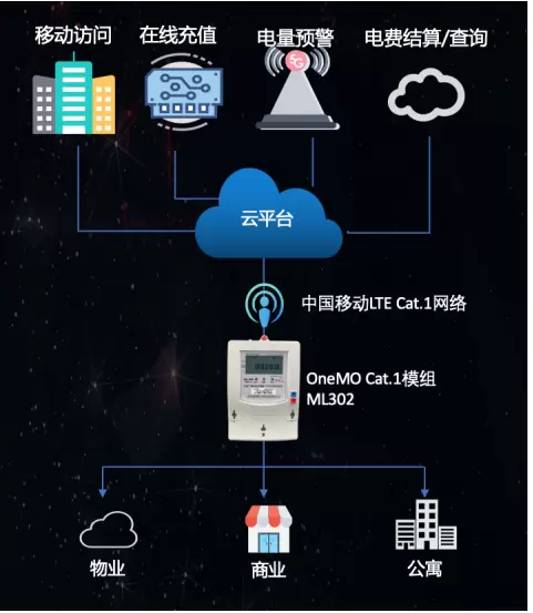 许多物业、商业、公寓转供电采用传统电表,存在电费结算难(人工抄表、核算)、充值难(IC卡充值、线下充值)、电量预警难(断电预警)等诸多不便。不仅浪费了大量的人力物力,在电费结算、电量管理方面也十分繁琐,效率低下。对用户来说,电量不足时无预警或依靠断电预警,且需要到现场进行电费缴纳,极大的降低了用电体验,造成了生产、生活的不便。而2G电表存在速度慢、信号差、面临退网的问题,也无法满足需求。因此,对于转供电服务平台化、电表智能化,Cat.1无疑是非常合适的解决方案。