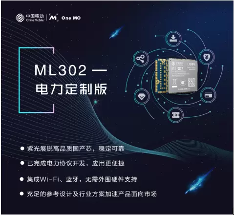 ML302是OneMO在2019年中国移动合作伙伴大会发布的首款LTE Cat.1 Bis通信模组,采用LCC+LGA封装方式,支持TD-LTE/FDD-LTE通信制式,可以直接部署在现有4G网络下。集成BT/WiFi/GNSS等接口,能够定制化满足物联网细分领域的需求,同时自带codec芯片,能够直接实现电话语音功能,并集成FOTA、OneNET、TTS等丰富的软件功能,帮助客户实现轻量开发,其深度的功耗优化,可以较大程度延长产品电池使用时间。更重要的是,ML302中已预置电力协议,可直接应用于电力行业中。