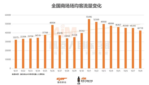 猎豹移动机器人大数据:国庆客流加速集聚,头部商场客流为普通商场近4倍