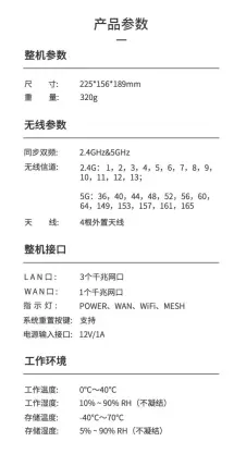 WF-1搭载5核芯企业级高通芯片,以及一颗独立NPU核芯做转发处理,保证设备长期稳定不掉线。配合256MB大内存,可同时满足120台设备连接,满足现代智能家居需求。采用了新一代的11AX、10240AM调制等技术,2.4G和5G双频并发,能提供1800M的无线速率,相较于W2-2提升50%。支持OFDMA技术,可同时为多用户传输数据,相较Wi-Fi5路由器,网络延时降低2/3,满足多人开黑的最佳选择。