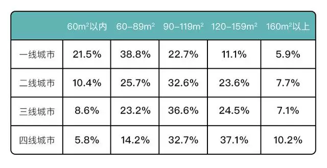 按照城市级别划分,一线城市90平米以下的占比就超过了60%,二三线城市90-120平米占比突出,而四线城市120-160平米的比例最为显著。按照平均预算,北上广深一线城市的基础装修平均预算,要比四线城市低至少2万元,是名副其实的"精致穷",也打破了人们的习惯性认识。