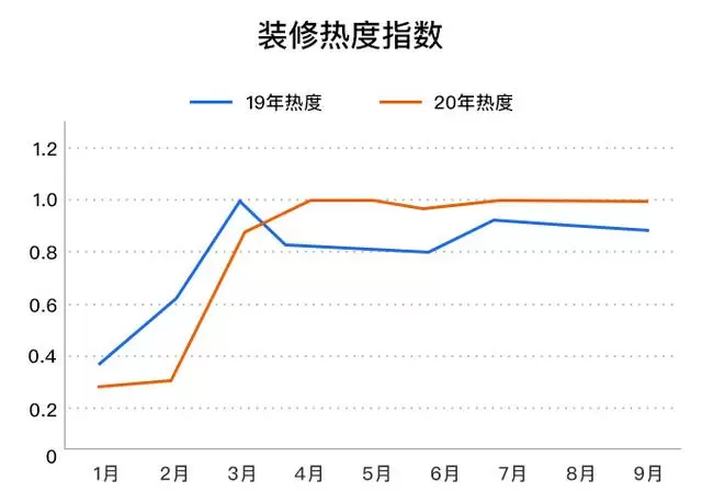根据《报告》内容,从2020年元旦开始,人们的装修热度普遍不强,一直持续到2月份都在最低点徘徊。