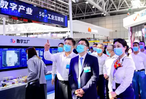 在参加第三届数字中国建设峰会期间,王国权副总经理参观了数字中国建设成果展中国电信展台。