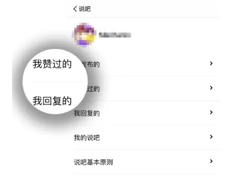 「说吧」版块界面左上角点击人像图标,进入个人界面,可以发现新增“我赞过的”和“我回复的”,为喜欢的帖子点个赞或留个言,以后重新翻看不会再迷路!