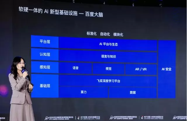 当下,人工智能技术日趋成熟,呈现出很强的通用性,具备标准化、自动化和模块化的工业大生产特征,已在很多行业发挥了重要作用,同时让技术成本逐渐降低,实用性得到大幅提升。百度大脑作为百度AI的集大成,可为各行各业起到支撑和赋能作用。百度大脑已形成完整布局,包含基础层、感知层、认知层、平台层,以及贯穿各个层级的AI安全。同时,针对AI计算,百度自研了中国首款云端全功能AI芯片昆仑,性能业界领先。