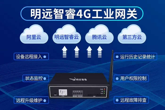 通过明远智睿云、阿里云和腾讯云等其他第三方云服务,GW300可以非常方便的对设备进行远程接入、状态监控、远程升级维护、远程故障排查、运行历史记录统计和用户权限控制等操作。