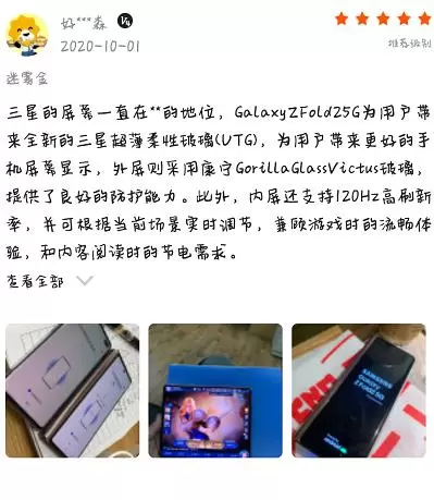从用户体验看来,三星Galaxy Z Fold2 5G折叠手机的自适应屏幕显示效果获得了广泛的关注。正如网友所言:“内屏支持120Hz高刷新率,兼顾游戏时的流畅体验。”