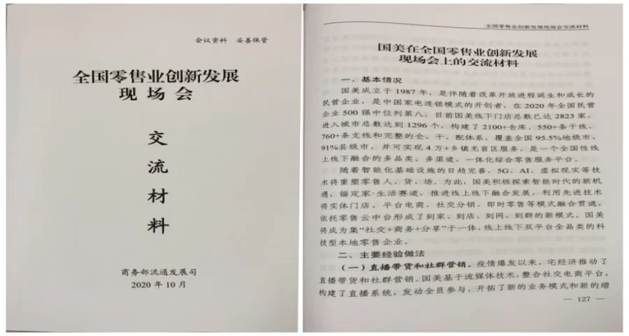 国美作为零售连锁企业代表受邀出席此次大会,同时凭借在零售业的丰富创新经验优势入选《全国零售业创新发展现场会交流材料》汇编中,作为行业优秀案例分享,为各省市政府推进零售提供了丰富的经验和启示。