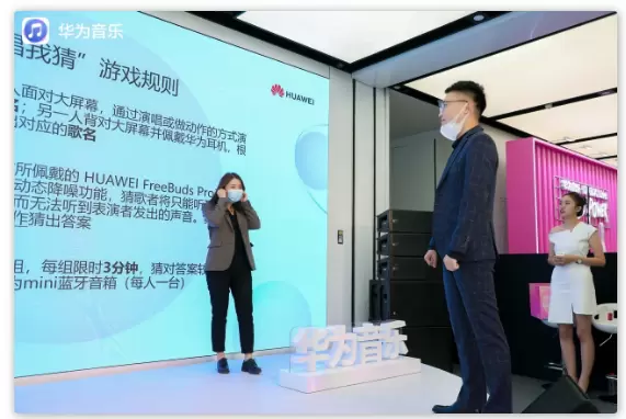 现场还进行了“你唱我猜”的游戏互动,猜歌者戴上HUAWEI FreeBuds Pro无线耳机,根据表演者演唱歌曲的口型与动作猜出正确歌名,并与另一组乐迷同台PK。如今,耳机已然成为运动健身的好搭档,尤其是HUAWEI FreeBuds Pro无线耳机作为全球首款智慧动态降噪TWS耳机,能够帮助用户从复杂变化的声音环境中获得优质的律动体验,实现舒适的聆听与沟通。活动现场更有幸运观众获得了HUAWEI FreeBuds Pro无线耳机大奖,感受智慧降噪带来的沉浸式聆听体验。