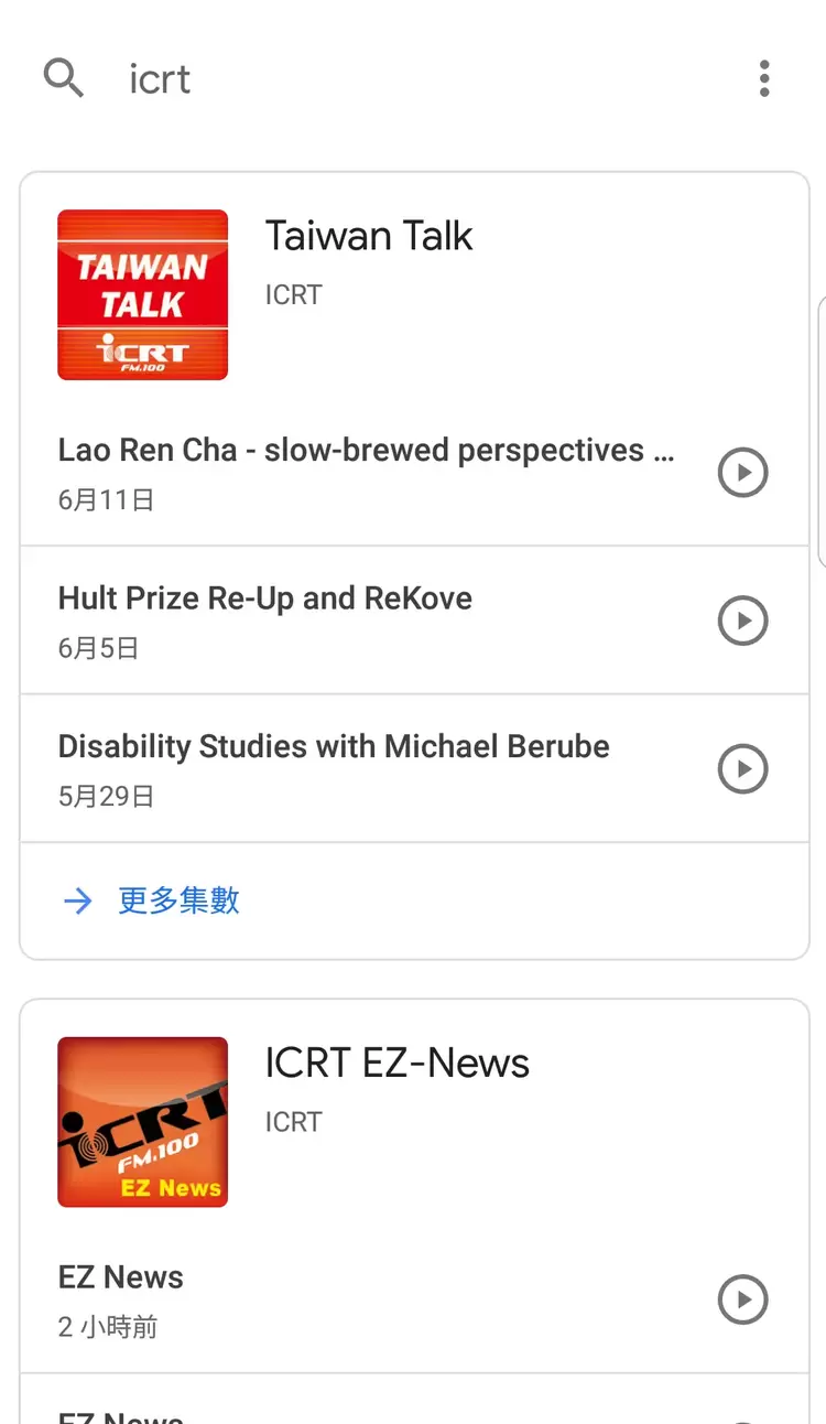 ▲ 中国台湾的 Podcast 所剩不多,主题多为英语学习,如 ICRT 的 EZ-News。(Source:Google Podcasts)