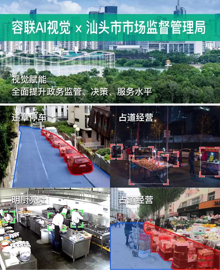 为提升汕头市的智慧化服务水平与城市运行效率,容联AI视觉为汕头市市场监督管理局打造了智能识别、督查、管控系统。