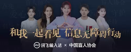 除了通过产品帮助视障群体像明眼人一样顺畅地高效输入外,讯飞输入法还连续3年和中国盲人协会合作,2019年更是联合发起“让我们一起看见”公益行动,号召社会各个领域为视障群体提供无障碍帮助,2020年世界盲人日,林永健、叶祖新、管栎、魏天宇、刘惜君等十多位明星加入行动,倡导信息无障碍,为视障人群助力。