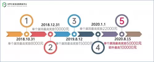 在近期公布的第五次奖励升级计划中,OPPO安全不仅将漏洞的评分规则合理地细分为互联网应用安全、终端安全、IoT安全、隐私漏洞、app恶意行为、安全情报等六大类,同时再度升级奖励方案,单个漏洞最高奖励达到5万元(人民币),额外奖励最高可达10万元(人民币)。