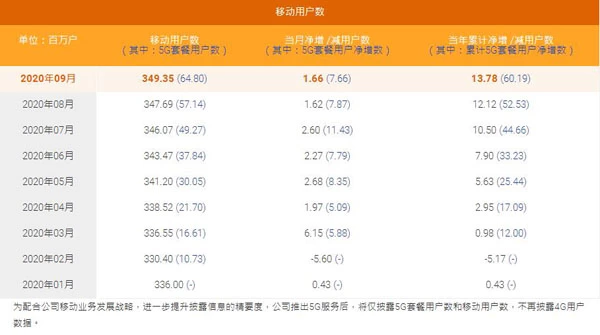 10月22日消息,中国电信公布其2020年9月份运营数据。当月,中国电信移动用户数净增166万户,移动用户数累计3.4935亿户,当月5G套餐用户净增766万,5G套餐用户累计6480万户。